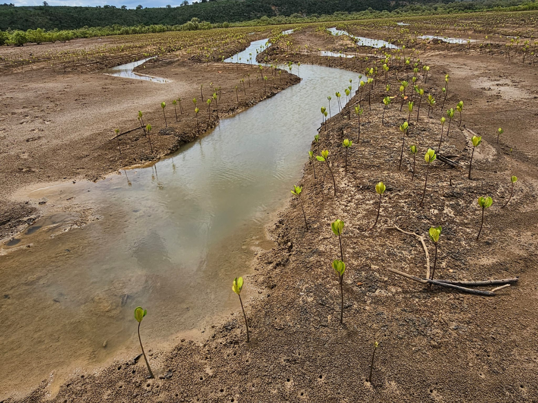 The project site was previously expansive mangrove forests but have since been depleted due to over-harvesting. Communities used to rely on these mangrove estuaries for high-value commercial fish species, like prawns and crabs, as a reliable source of income for the fishing community.